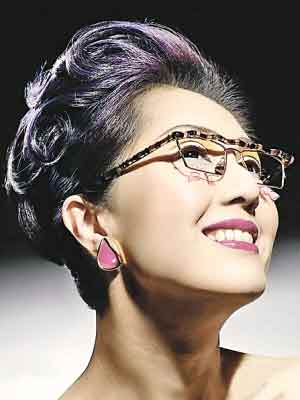 图文:杨千嬅幽默复古造型抢眼 为眼镜展"献身"