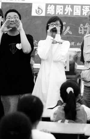 昨日下午2点半左右,韩国明星张娜拉突然出现在绵阳九州体育馆的帐篷小学门前,让在场的人大为吃惊。张娜拉下车后直奔帐篷内探望正在上课的孩子们,孩子们一看到可爱的明星兴奋地不停鼓掌。她先向同学们和老师、校长问好,并鼓励孩子们要尽快从地震的不愉快中走出来,可以继续快乐无忧地学习生活。