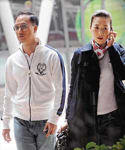 到了戏院,张可颐像小朋友般,靠在男友背后,但一发现有记者拍照,立刻与曾姓男子急步上车,踩油撇开记者。