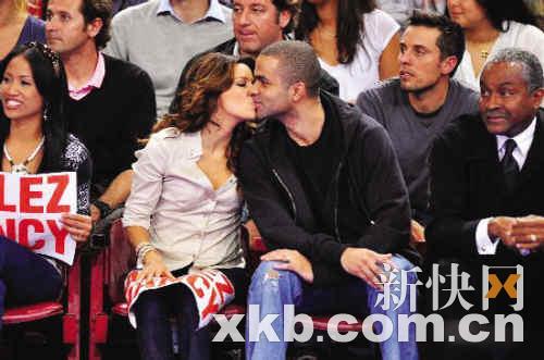 6月15日,NBA圣安东尼奥马刺队当家球星托尼·帕克携爱妻伊娃·朗格莉亚现身巴黎,观看法国篮球联赛的决赛,为兄弟TJ·帕克加油打气。伊娃与帕克接吻大秀恩爱,两人俨然成了比赛场边最耀眼的明星。