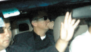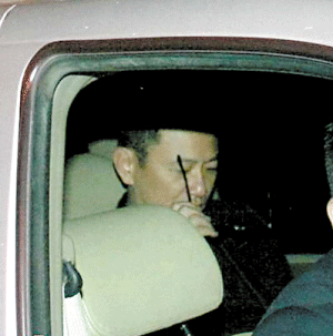 王家卫快抵达时,在车里脱下墨镜,真是少见。