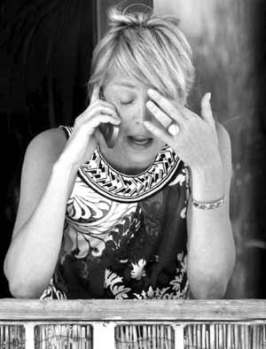 图文:莎朗·斯通打电话 神情痛苦 眼含泪水