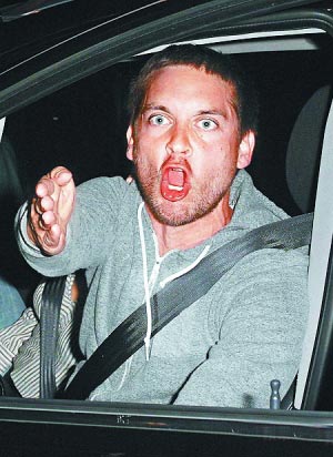 “蜘蛛侠”托比·麦奎尔日前开车外出时遭到狗仔队跟拍,有人大吼他的名字想引起注意,也有人追问他是否接拍《蜘蛛侠》续集。闪个不停的镁光灯让他看不到路,于是火大开骂:“他X的给我滚开!”凶狠模样与平日慈父形象大相径庭,媒体事后揶揄他抓狂模样很吓人,也许应该去演“绿巨人浩克”。
