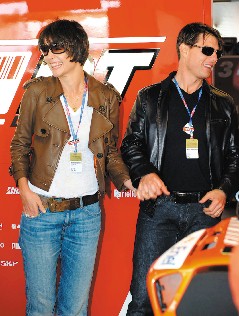 中新网7月22日电 汤姆·克鲁斯与妻子凯蒂·赫尔姆斯在把宝贝女儿苏蕊暂时交给外祖母之后,两人在20日来到加州的Laguna Seca车场观赏美国机车大赛(Moto Grand Prix)。只见两人均戴上墨镜、穿上皮夹克,显得酷劲十足。