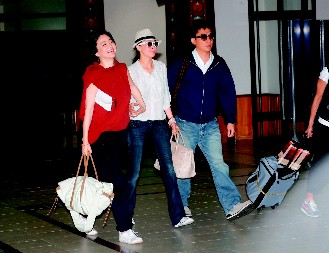 中新网7月25日电 梁朝伟(伟仔)和刘嘉玲昨天一早搭私人飞机飞离不丹,这是他们婚后首度公开露面,上午11时半即飞抵印度新德里。一对新人心情靓到极点,即使媒体冲入不丹机场的VIP室拍照也未遭驱赶,同行的林青霞被问到是不是要当“电灯泡”?她笑而不答。