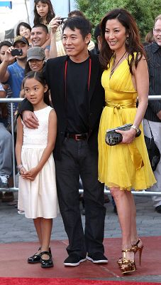 李连杰带着女儿Jane和杨紫琼合影