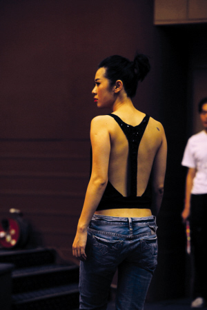 一直接拍文艺片的余男,首次触电好莱坞商业片《极速赛车手》,片中诸多的第一次,让余男在表演的道路上有了更多尝试,也让她长了见识。昨日,余男带着收获的喜悦,出现在《极速赛车手》的北京首映式上,一身黑色的露背上装,让余男显得性感十足。