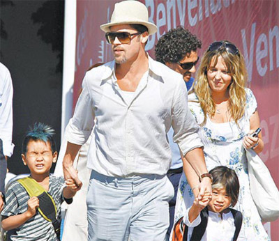 中新网8月28日电 布拉德·皮特昨日带2名养子梅铎斯和帕克斯到水城,外传他将偕同女友安吉莉娜·茱莉(Angelina Jolie)出席威尼斯影展,但茱莉留在南法豪宅照顾新生儿与2个女儿,影迷想看她产后复出,可得再等。