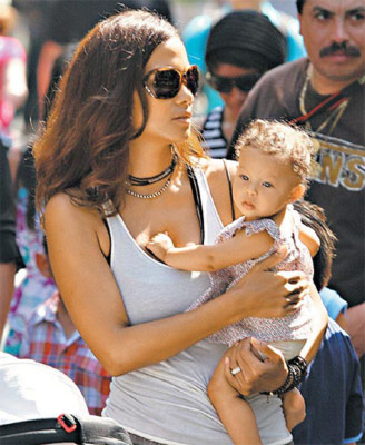 据台湾媒体报道,5个半月大的娜拉有一双蓝眼睛与一头卷发,活泼好动,不时被哈莉·贝瑞与外婆逗得咯咯笑,相当可爱。哈莉·贝瑞是黑白混血,孩子的爸爸是白人男模盖柏瑞欧布莱,女儿的肤色比她更白。哈莉·贝瑞产女后坚持不出卖女儿照片捞钱,7月曾有记者偷闯她家花园拍到她们母女俩的照片,当时宝宝刚好趴在她肩上,看不到脸蛋,哈莉·贝瑞获悉后火冒三丈,扬言要告媒体。