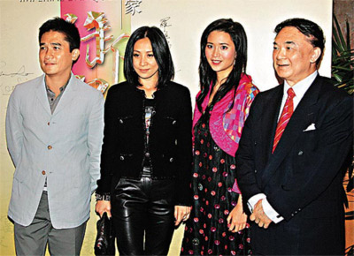 罗旭瑞(右一)和女儿罗宝文(右二)殷勤接待梁朝伟、刘嘉玲夫妇。