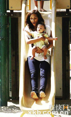 哈里·贝瑞陪女儿玩滑梯享天伦之乐(图)