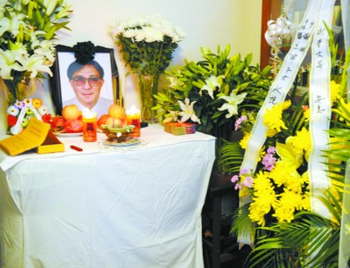 □谢晋灵堂简单肃穆