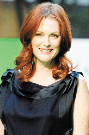 本届东京电影节上,《盲流感》的女主角朱丽安·摩尔是唯一的好莱坞星光。本次的东京之行,朱丽安·摩尔郑重其事,她在开幕式上以黑色礼服出场,在昨天举行的新闻发布会上则以桃红色的低胸晚装和一套短款的碎花小旗袍亮相。《盲流感》本是一部沉重的电影,但朱丽安却习惯在现场报以俏皮的微笑。一头红发的朱丽安·摩尔在片中那些智慧的笑容、坚毅的神情,让我们不得不相信那就是生活中的她,而她却表示:“不管是快乐还是不安,那些都是我。”