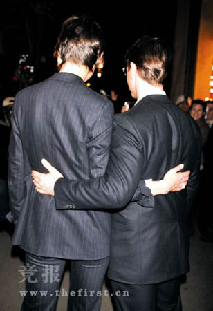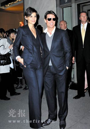 美国当地时间2008年10月20日,为庆祝凯蒂·霍尔姆斯加盟的《凡我子孙》的顺利演出,汤姆·克鲁斯、凯蒂·霍尔姆斯夫妇出席了在麦迪逊大道举办的鸡尾酒派对。两人同以西装现身,霍尔姆斯高出阿汤哥半头,又是短发,透过两人背影看去,令人不禁尴尬到底谁是谁的“老公”呀?阿汤哥这次可谓面子全无!