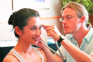 专家在李冰冰脸上贴上标签,以方便为蜡像定型。