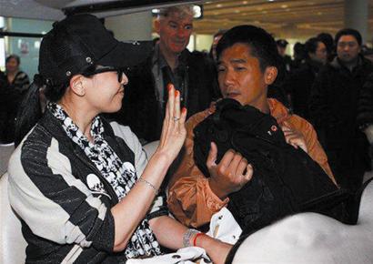 当天下午6时左右,梁朝伟携刘嘉玲出现在首都机场T3航站楼,立即引起了群众的注意,并有影迷拿出本子让梁朝伟签名。梁朝伟身穿一件橘色外套配牛仔裤,向媒体及影迷展示招牌笑容。刘嘉玲则是一身黑白运动装,戴着黑框眼镜和鸭舌帽,不时扬手大秀闪亮婚戒。