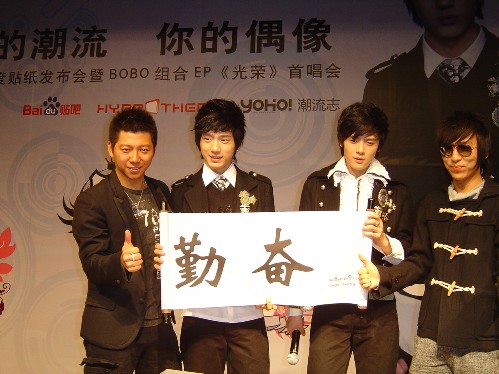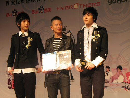 中新网10月22日电 10月22日,百度整合影视经纪公司、杂志三方的资源,与华谊、新力传媒共同携手,发布了娱乐时尚赠品——百度贴纸。此外,在发布会现场,首期贴纸艺人BOBO天团偶像组合举行了其第一份音乐作品《光荣》的首唱会,现场气氛高涨。