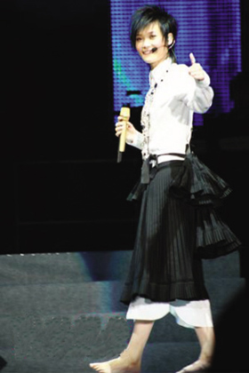 3日晚8点广州天河体育馆内,李宇春2007广州演唱会举行。在几千名“玉米”高喊“李宇春——我的”呼声中,李宇春一身金色服装登场,整场演唱会李宇春一共换了5套服装,其中“玉米”们呼声最高的是李宇春的一套黑色裙子。演唱会结束后“玉米”们仍久久不愿离去。(小雨)