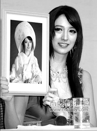 记者会上莉亚说自己一直希望有一个日式的婚礼,所以这次才挑选了这件纯白色的日本传统结婚礼服,妈妈和弟弟,好友和部分同事都有来参加自己的婚礼。(特约记者 文琳)