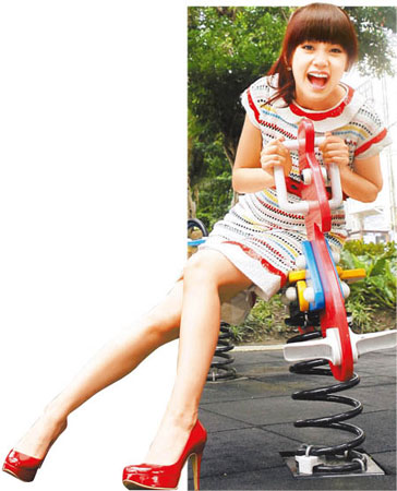 有“口爱教主”封号的她,配合新辑造型也明显成熟,包括露肩、露腿,为何不露奶?她笑称自己只有32B“没得露啦”!至于续约一事,她的经纪人蒋承缙说:“我们和SonyBMG合作愉快,目前全力做好新专辑宣传再说。”