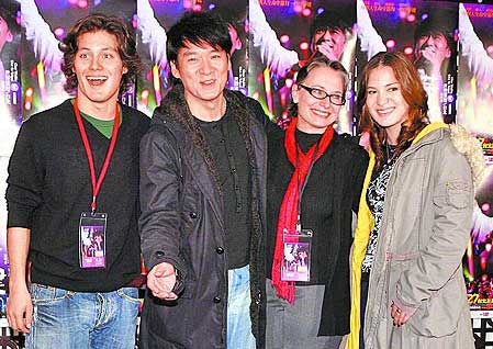 周华健(左二)的儿子周厚安(左起)、老婆康粹兰、女儿周厚恩,一起庆功。