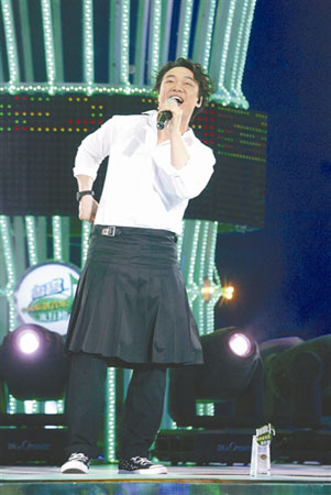 2009“雪碧中国原创音乐流行榜”日前在京揭晓,勇夺5项大奖的陈奕迅穿着裙子亮相,他称自己近年都是自己做造型师,裙子是逛街时偶然买回来的,想体会一下当女生感觉。
