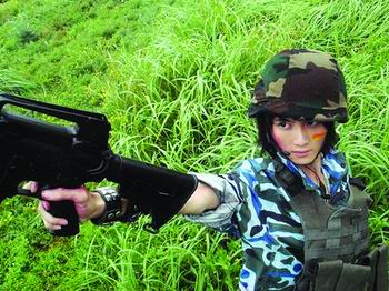 上周日,《加油!好男儿》9名决赛选手来到了上海某军事教育基地拍摄了一组新的宣传照。照片上,选手身着迷彩服,顶着酷热、大雨参加“作战”。照片还特别突出了争议最多的“男版李宇春”向鼎,以各种形式试图力证其“男儿”本色。