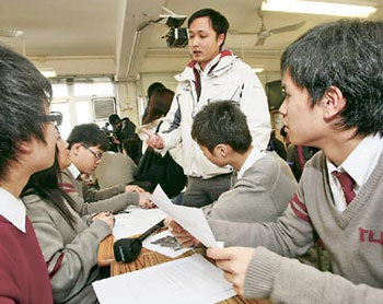 “资料图:2008年2月11日”涉及疑似艺人淫照风波的香港歌手钟欣桐(阿娇)(左),二月十一日下午到香港英皇中心与歌迷进行新春聚会,并会晤传媒,就裸照风波宣读声明,但期间不接受记者提问。钟欣桐在露面时承认,以前很天真及傻,对事件的社会影响深感抱歉,感谢歌迷及同事对她的关心。 中新社发 王丽南 摄