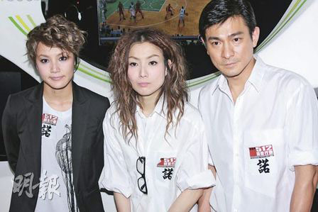 将出发到灾区的刘德华(中)、郑秀文(右)和何韵诗做足心理准备。