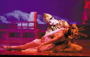 在海外巡演了几十场后,音乐剧《大唐贵妃》首次回归中国,正在北京世纪剧院上演。除了华丽的服装和舞台布景夺人眼球外,该剧中女演员仅穿肚兜、T-Back内裤跳的舞,唐明皇与杨贵妃的“激情戏”以及“春宫图”的舞台背景令不少国内观众跌破眼镜,在网上也引发了“音乐剧尺度”的争论。