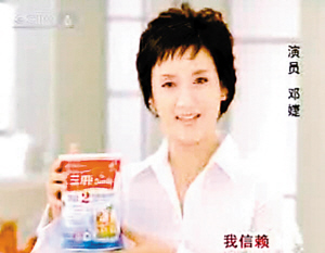 “专业生产,品质保证,名牌产品,让人放心,还实惠,三鹿婴幼儿奶粉,我信赖!”在网上流传的三鹿婴幼儿奶粉广告视频中,女明星邓婕手举罐装三鹿婴幼儿奶粉说着一段广告词。