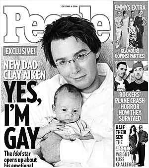 《人物》杂志报道,美国真人秀节目《美国偶像》第二届的亚军克雷·艾肯(Clay Aiken)终于出柜了,他承认了自己是一名同性恋者。