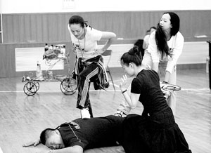 在昨晚的排练中,当宁静剧中的老公到来后,面对五大三粗的丈夫,她一声大吼:“快、快、快来帮忙,我老公最怕痒了,你们还愣着干吗,快来一起制服他。”将女大厨泼辣的一面表现得恰到好处。(记者张宁)