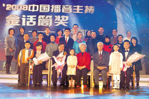 昨晚,由中国广播电视协会、天津广播电视电影集团主办,中广协会播音主持委员会、天津电视台、天津人民广播电台协办的’2008中国播音主持“金话筒”奖颁奖盛典在天津宝坻区京津新城举行。颁奖晚会由央视主持人白岩松和天津电视台主持人李宗瑶主持。