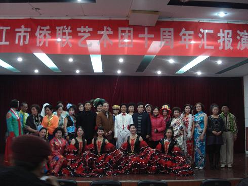 中新网12月30日电 据镇江市侨联消息,12月27日,江苏省镇江市侨联艺术团举办庆祝成立十周年汇报演出。来自镇江市辖区的归侨侨眷、留学生亲属近百人参加了活动。