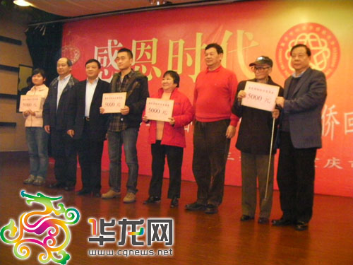 在上午的活动中,家住重庆万盛区的归侨侨眷阳光,从重庆市侨联领导手中,接过了5000元的特困助侨关爱基金。除此之外,还有来自沙坪坝、荣昌、大渡口3位特困侨眷,每人也分别获得了5000元的助侨关爱基金。