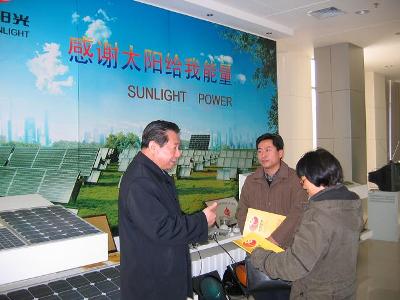 中新网2月26日电 据济南侨网消息,在山东济南市侨办的引见下,日前,香港东方国际企业发展有限公司市场部总监刘云方女士,在市侨办和济南生产力促进中心的相关负责人陪同下,来到山东华艺阳光太阳能产业有限公司与该公司总经理王道阳洽谈引进低成本薄膜太阳能电池开发项目。
