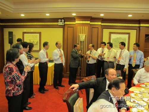 中新网5月10日电 据广东侨网消息,5月7日晚,广东省侨办主任吴锐成、副主任黎静在北京京西宾馆设宴欢迎参加第五届世界华侨华人社团联谊大会的部分侨领。