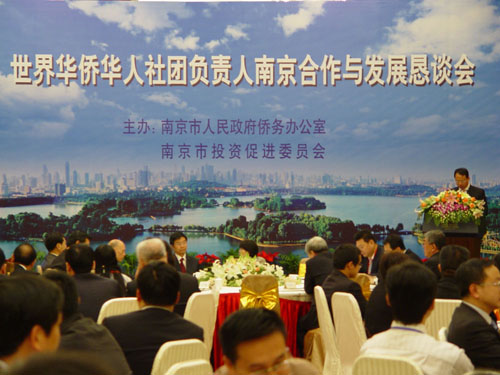 在南京,江苏省政府办公厅副秘书长张吉生、南京市政府办公厅副主任宋璐等见宴了考察团一行。华侨华人社团负责人出席了由南京市侨办和南京市投资促进委员会共同主办、南京市有关各区经贸部门参加的“世界华侨华人社团负责人南京合作与发展恳谈会”,参观了南京市雨花软件园和南京市规划建设馆。