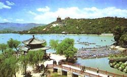 北京明、清时所修宫廷苑囿,不少是依照江南的风景名胜。昆明湖西部的设计,很显然是完全依照西湖苏堤、白堤的风景情调,如果划条小船,划到龙王庙西北一点水面上,向西望去,则很象在杭州西湖中,望清波门外昭庆寺门前到断桥的那一段堤痕,玉泉山正像初阳台,玉泉山的塔如同保俶塔,情趣十分近似。
