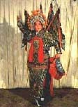铠甲类 古代作战时,战士穿的铠甲,在京剧舞台上叫靠,是一种美化了的舞蹈服装。靠是用和色的素缎子制成的,上面用金、银彩线绣满鳞甲,看上去辉煌夺目。 靠分男靠、女靠。 男靠式样是分前后两扇披在肩上,还有护领、护肩、下甲、吊鱼、靠肚子以及收紧的瘦袖。 女靠上身与男靠形式差不多,下身缀着五色绣花的飘带,并在靠里衬着裙子,但在开打时,里面也不裙子。 靠一般分硬靠、软靠和改良靠三种, 穿用人物有《霸王别姬》中的项羽(穿平金黑靠)、《古城会》中的关羽(穿平金绿靠)、《挑滑车》中的岳飞(穿白靠)、高宠(穿蓝靠)、《连环计》中的吕布(穿粉靠)、《破洪州》中的杨宗保(穿淡湖靠)等。 戏曲舞台上扮演女将、女统帅的战服多采用女大靠。戏剧中使用的大靠与古代生活中的甲胄并不一样。随着戏曲艺术的发展,大靠的式样和色彩逐渐增多,但距生活服装也越来越远。它纯属为了适应舞台表演的需要而设计。 建国前女大靠种类较少,只有梅兰芳演出《穆柯寨》"花厅招亲"一场戏穿用"玻璃肚子"(用玻璃棍装饰的改良靠)。建国后女靠样式逐渐增多,色彩不断丰富。戏曲服装中,女靠比男靠样式多,而男靠比女靠色彩丰富,女靠只有粉红、大红、淡湖等色。新编历史剧《杨门女将》出台之后,出现了女白靠、黑靠、雪青靠、米黄靠等。 穿用人物有新编历史剧《三请樊梨花》中的樊梨花、 软靠:背后不插靠旗。一般是老年体弱的老将穿用。 改良靠:样式与软靠近似,只要腰身既紧又瘦,几乎就象用腰带系在身上。有的绣鳞甲,有的绣些花纹或镶上一些镀镍的金属凸片或看着晶光闪亮象圆钉子形的装饰。 戏曲舞台上扮演番将、武将群众或新编历史剧中常用改良靠。穿用人物有《雏凤排空》中的番将韩昌、《三打陶三春》的郑子明、《闹龙宫》中的龙子等。 铠是戏曲舞台上扮演皇家殿前御林军、随驾仪仗队或军中统帅的服装,又称大铠。色彩以红为主,多绣平金几何图形纹样。它的造型与生活中的甲胄相似。可见它是以古代生活服装为依据的,只是做法不一。生活服装有铜钉(有的镀金)固定在衣服上,而舞台上的大铠以平金绣为主。这种穿大铠的武士在舞台上只是摆排场,壮声势,没有武打动作。
